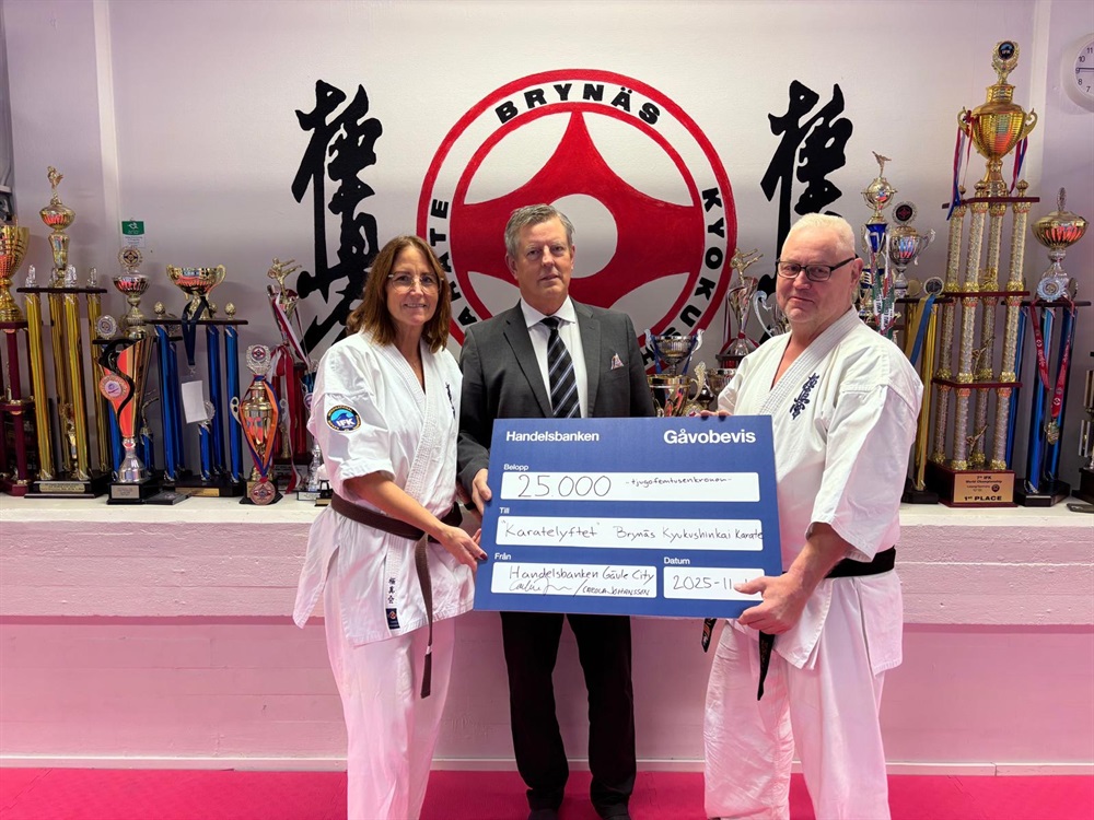 Tidigare i veckan kom Handelsbankens representant Åke Ahlqvist till Brynäs Kyokushin och delade ut ett bidrag på 25 000 kr.